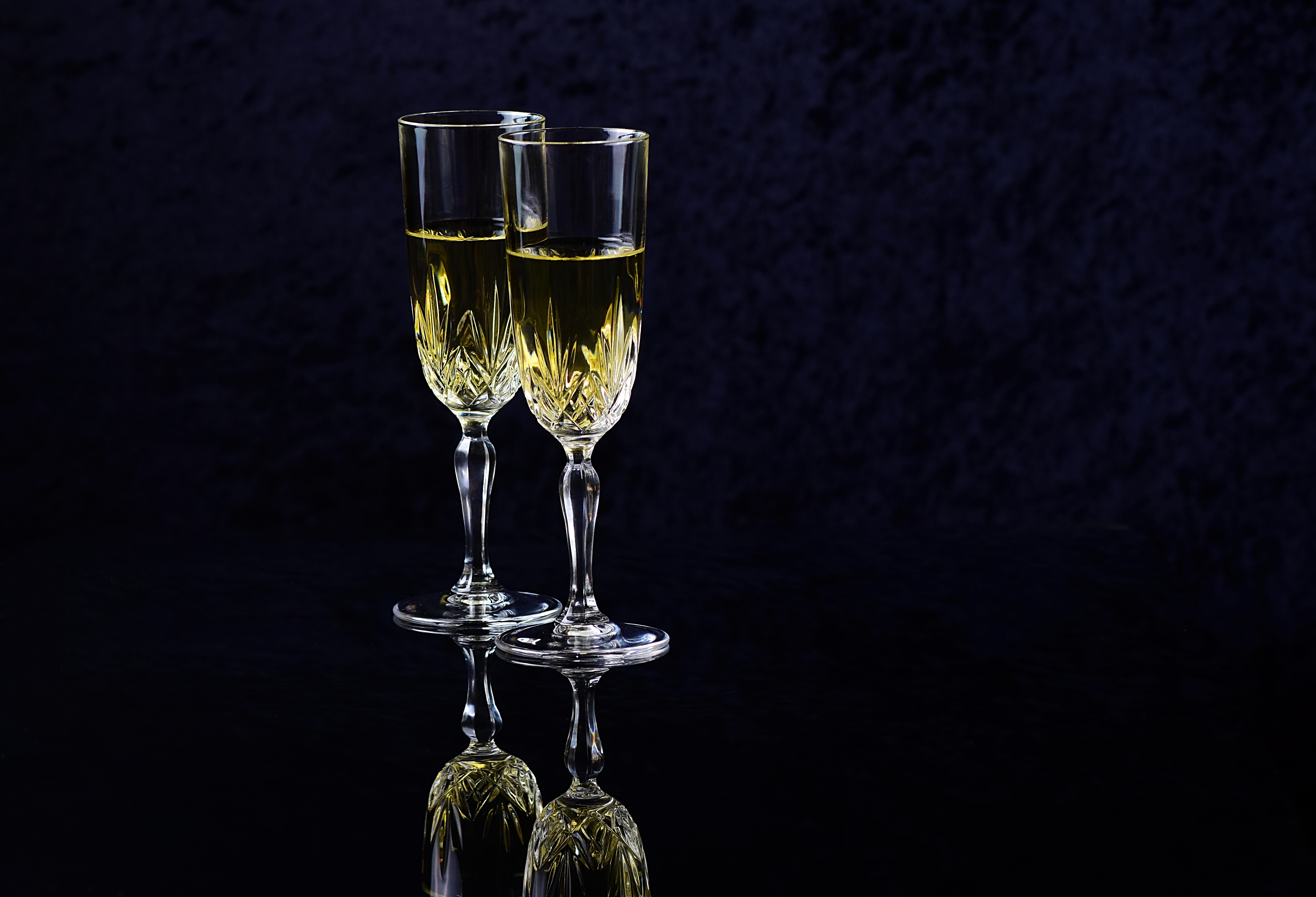 Wallpaper Two glasses with champagne on a black background