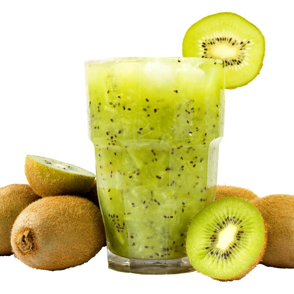 » Wallpaper A glass of kiwi drink on a white background with kiwi fruit