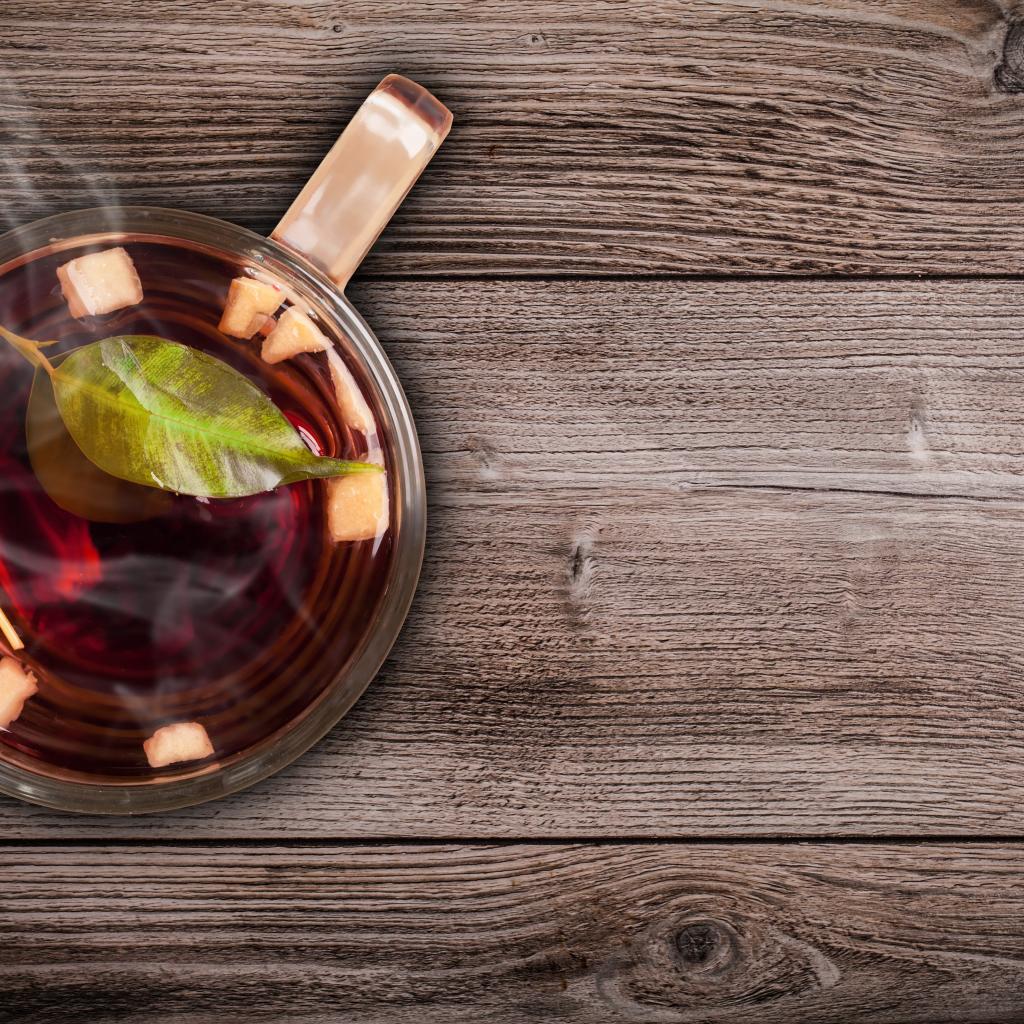 Wallpaper Glass cup of hot tea on a wooden table