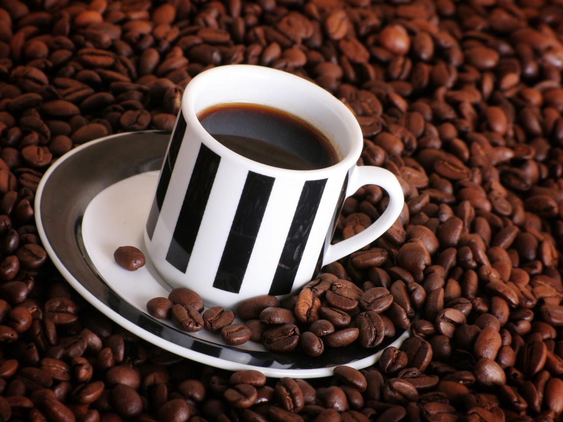 Wallpaper Cup of coffee on a table with coffee beans
