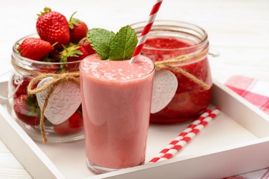 Wallpaper Strawberry smoothie on a tray with berries and jam