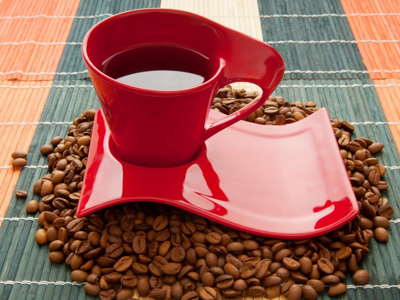 Wallpaper Red cup stands on coffee beans