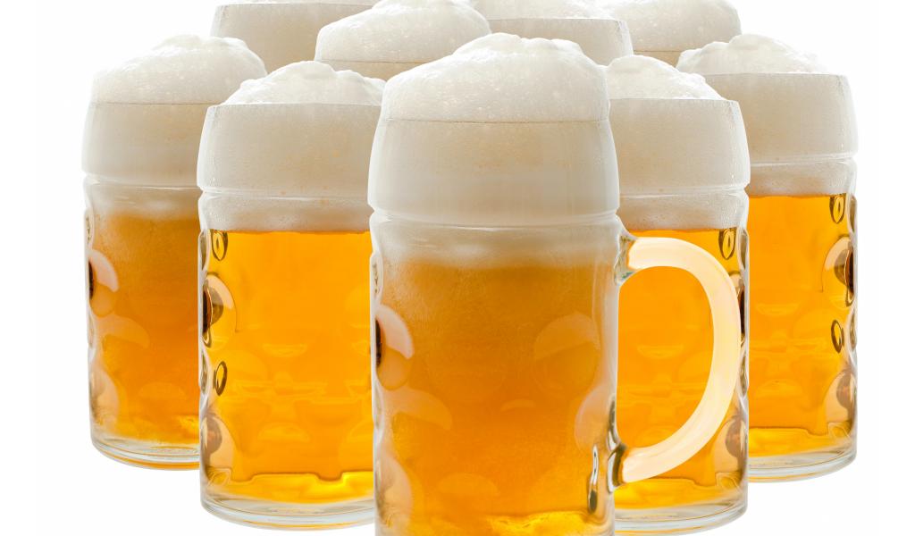 Wallpaper Many glasses of foamy beer on a white background