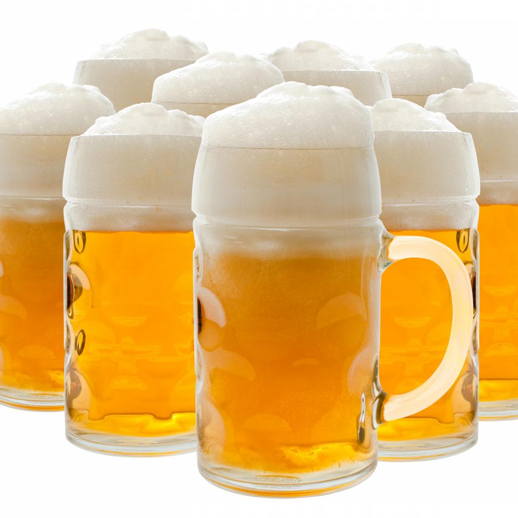 Wallpaper Many glasses of foamy beer on a white background