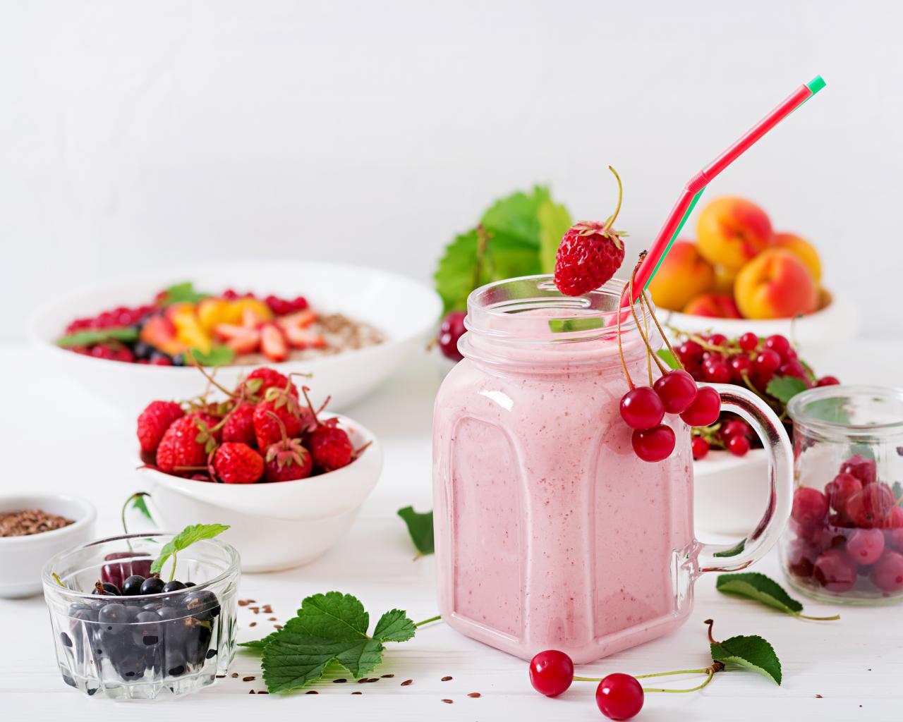 Wallpaper Smoothies in a jar on a table with fresh berry