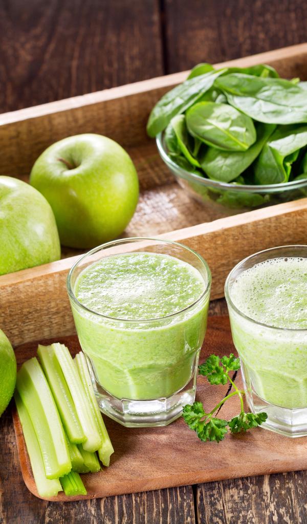 Wallpaper Smoothies on the table with green apples and greens