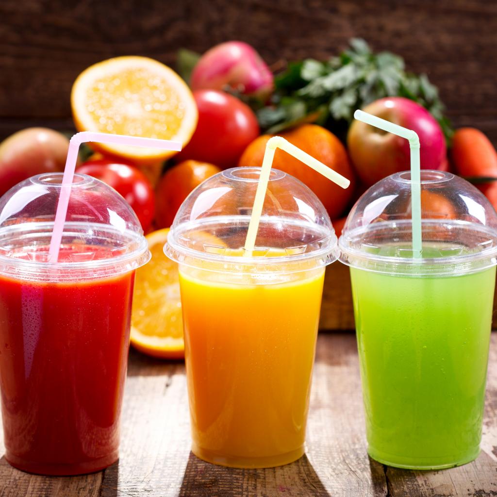 Wallpaper Fresh juices in glasses with tubes on the table
