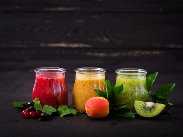 Wallpaper Fruit smoothies in jars on the table