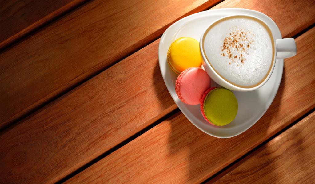Wallpaper A cup of cappuccino on a saucer with pasta biscuits