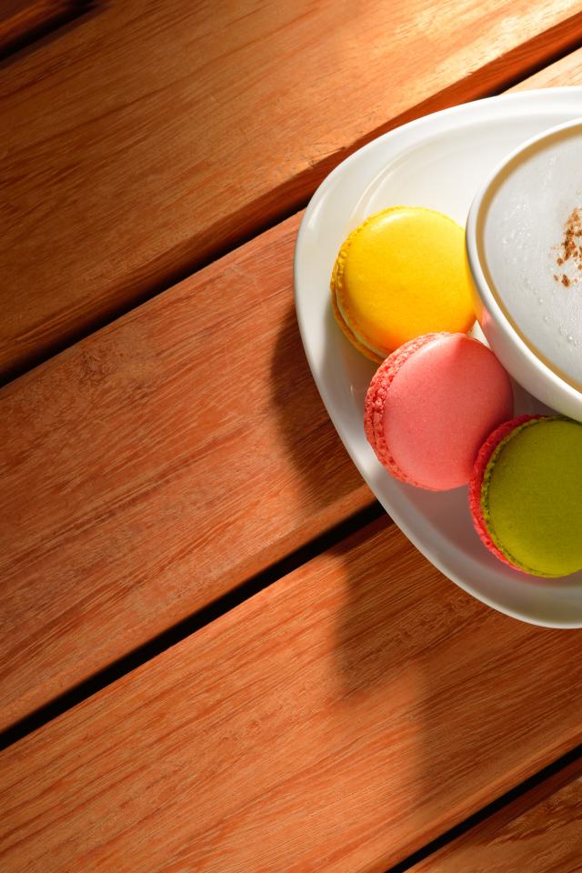 Wallpaper A cup of cappuccino on a saucer with pasta biscuits