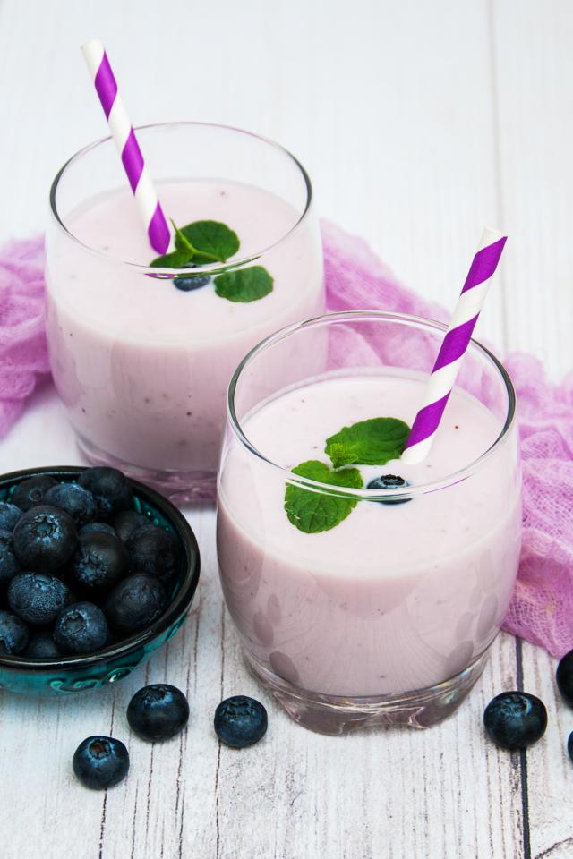 Wallpaper Two glasses of blueberry cocktail with straws