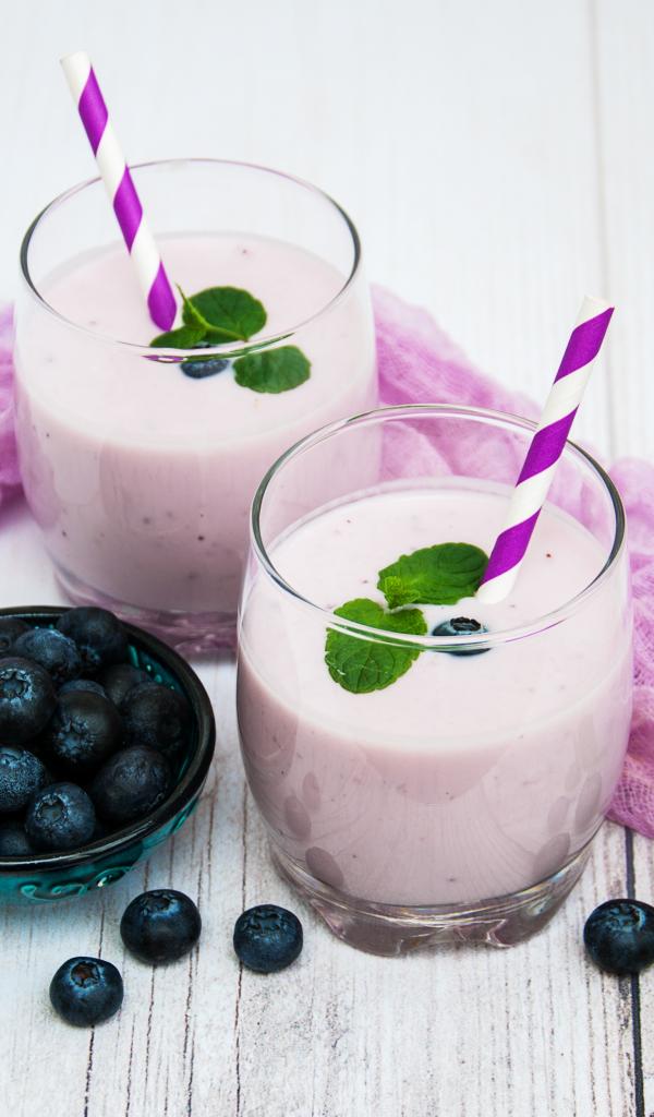 Wallpaper Two glasses of blueberry cocktail with straws