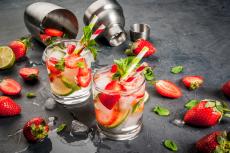 Wallpaper Cold drink in a glass on a table with strawberries and mint