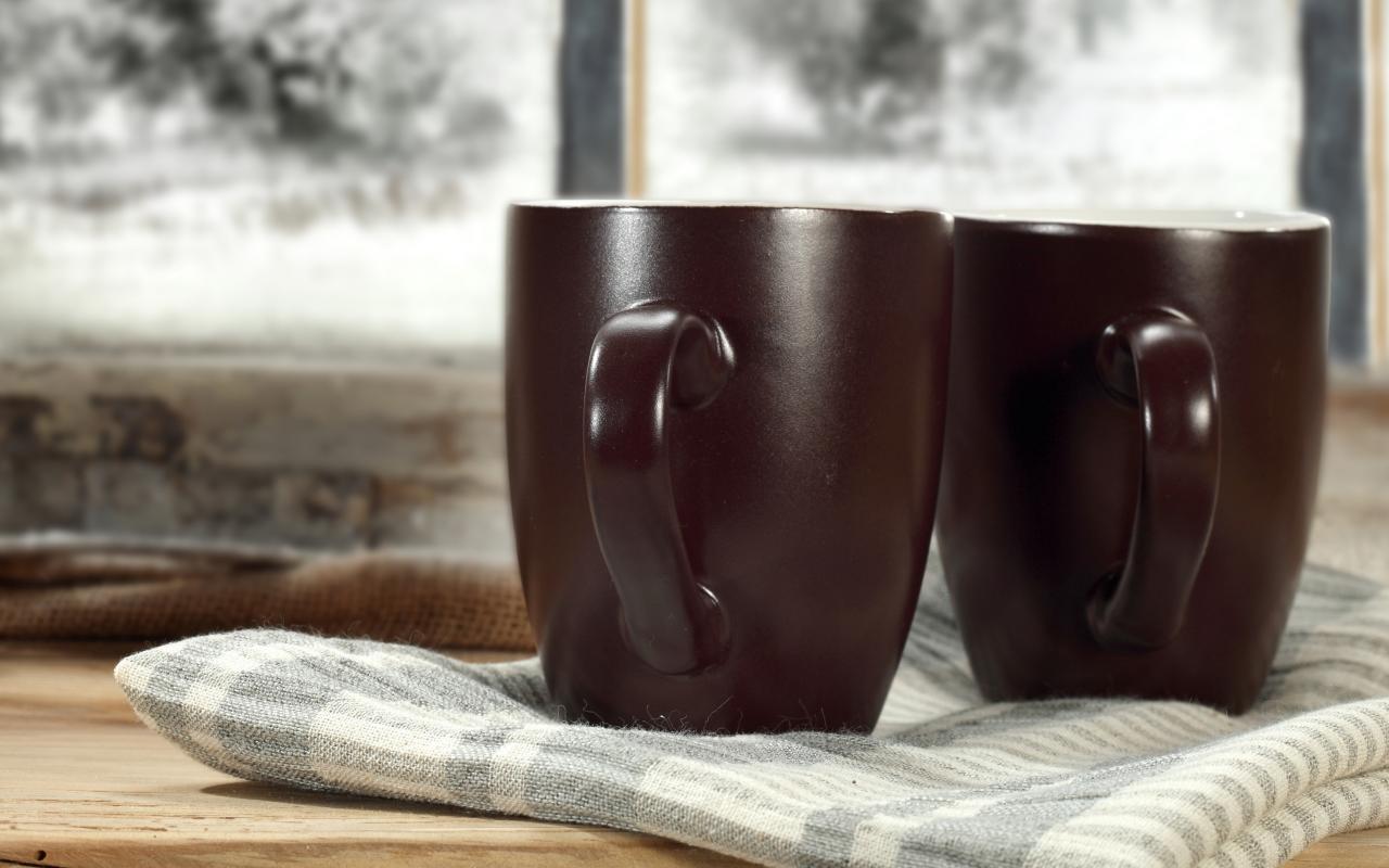 Wallpaper Two brown cups of coffee on a table with a scarf