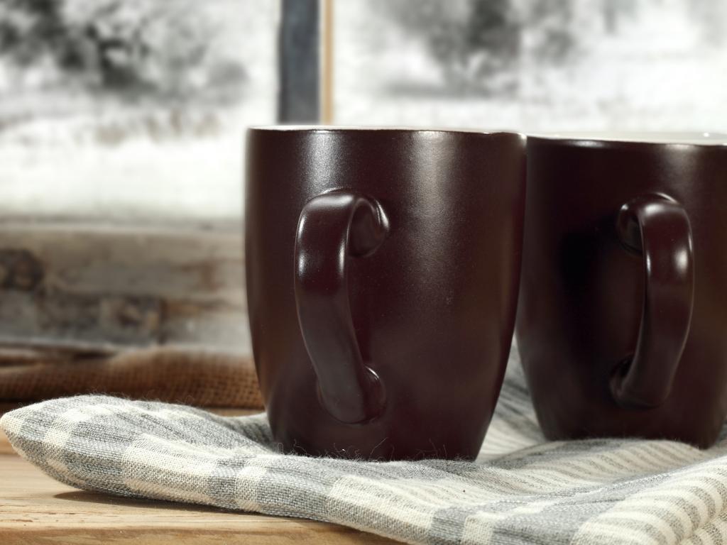 Wallpaper Two brown cups of coffee on a table with a scarf