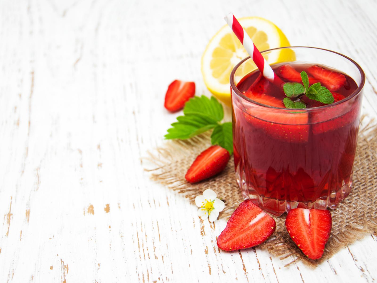 Wallpaper Drink in a glass with strawberries