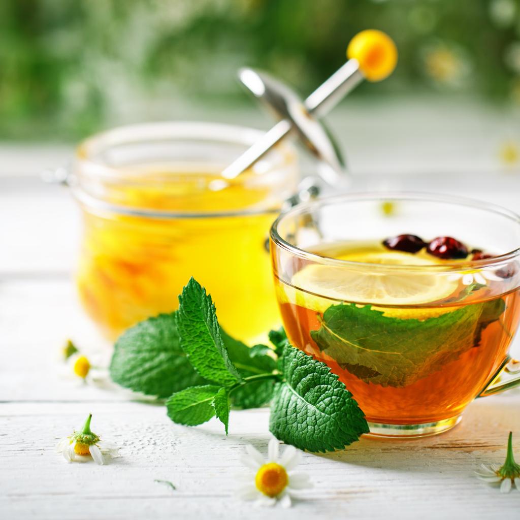 Wallpaper Cup of tea with lemon and mint on a table with honey