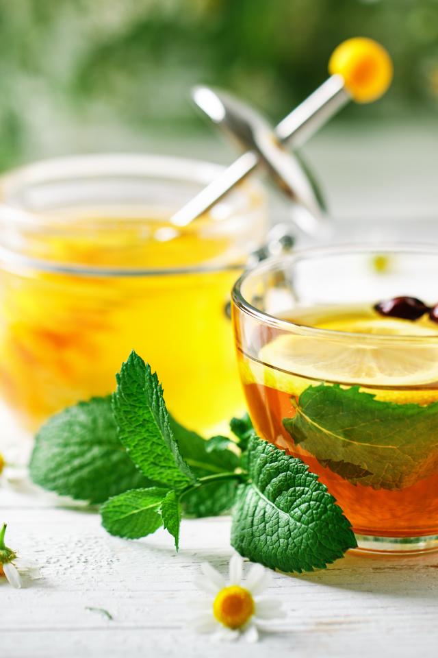 Wallpaper Cup of tea with lemon and mint on a table with honey