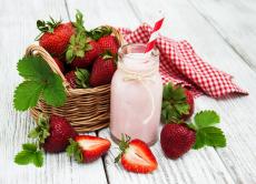 Wallpaper Two glasses with a cocktail on a table with a bouquet and strawberries