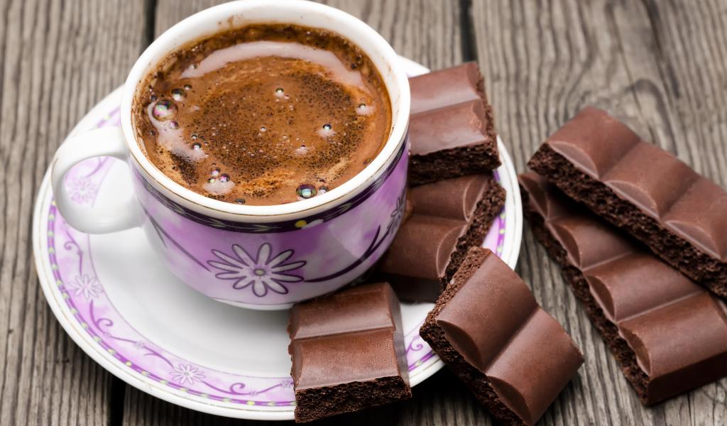 Wallpaper Cup of coffee on a table with pieces of chocolate