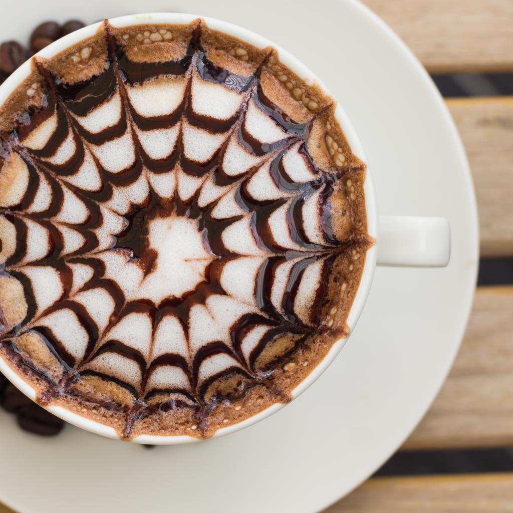 Wallpaper Cup of coffee with a pattern on the foam on the table