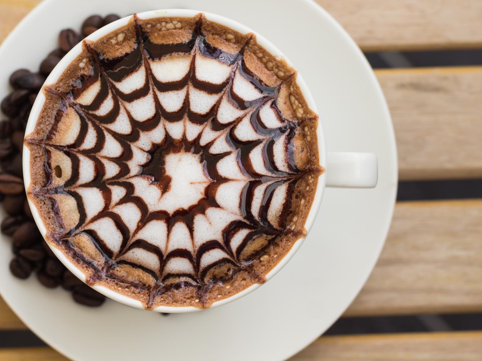 Wallpaper Cup of coffee with a pattern on the foam on the table