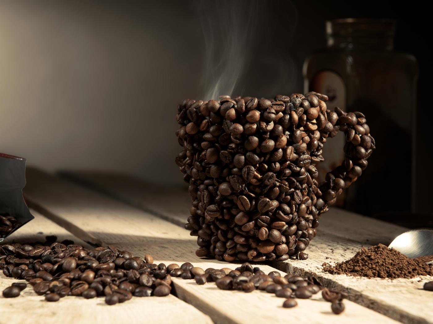 Wallpaper Cup made of coffee beans on the table