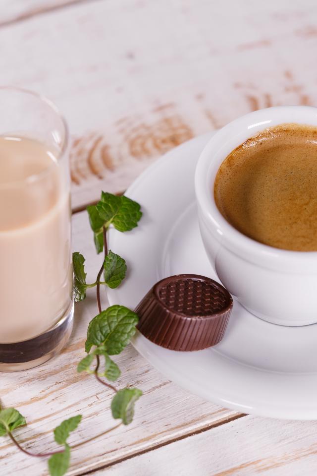 Wallpaper Hot coffee on a table with chocolate candy and cocoa