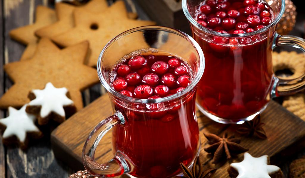 Wallpaper Two glasses of cranberry juice on a table with cookies