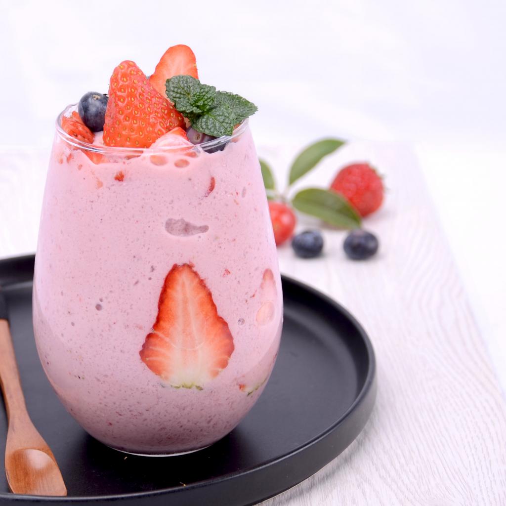 Wallpaper Yogurt in a glass with blueberries and strawberries