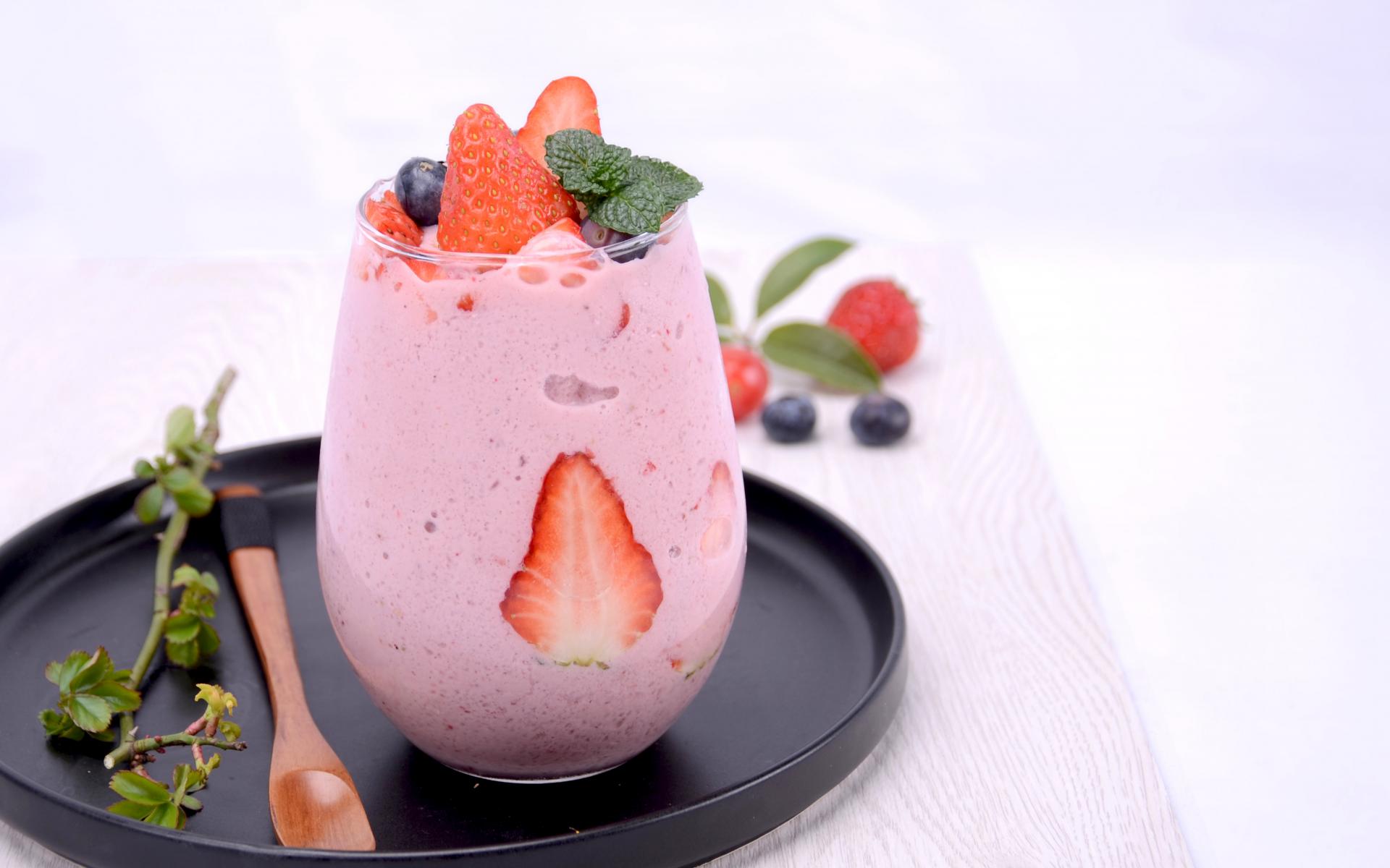 Wallpaper Yogurt in a glass with blueberries and strawberries