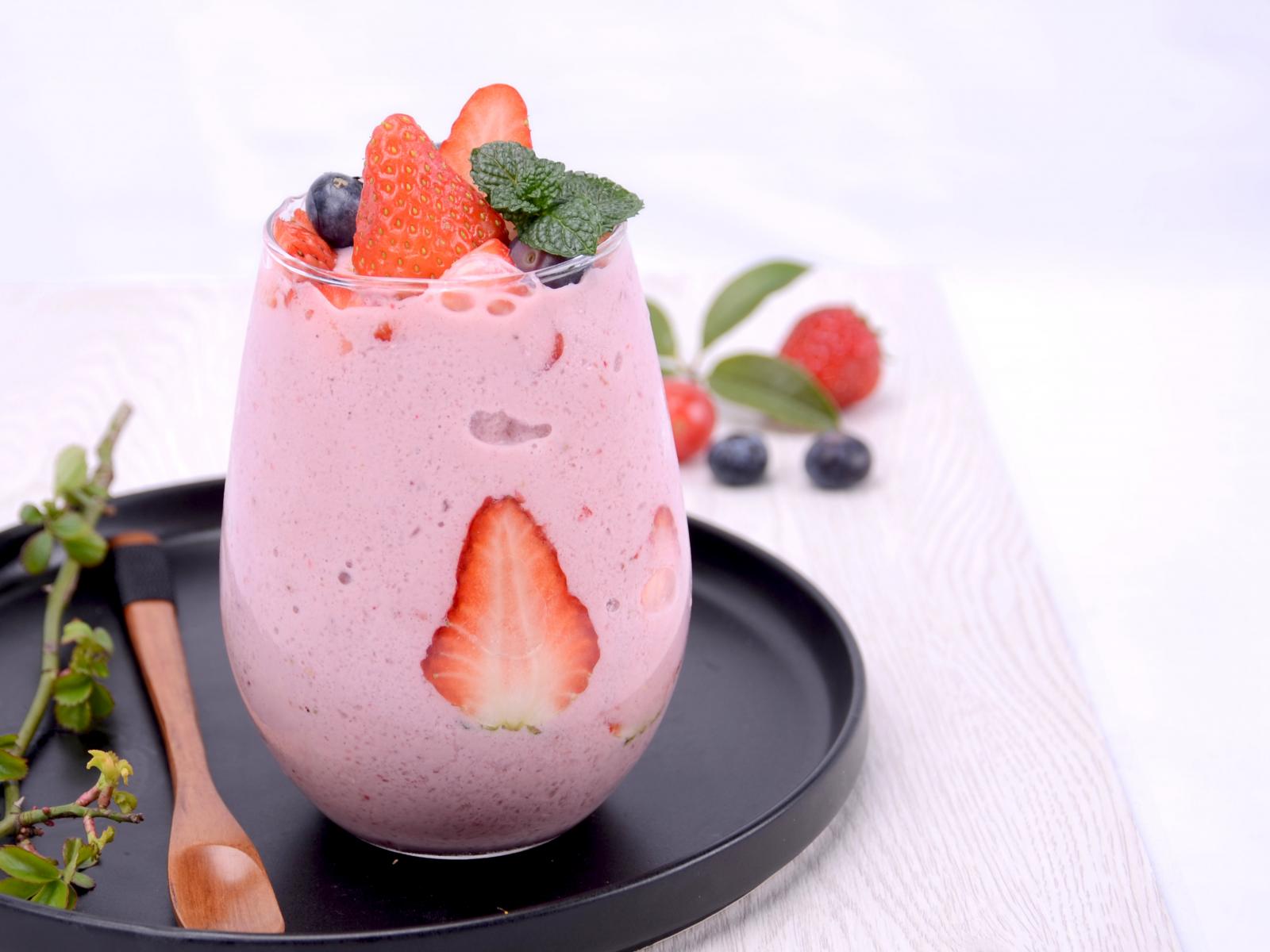 Wallpaper Yogurt in a glass with blueberries and strawberries