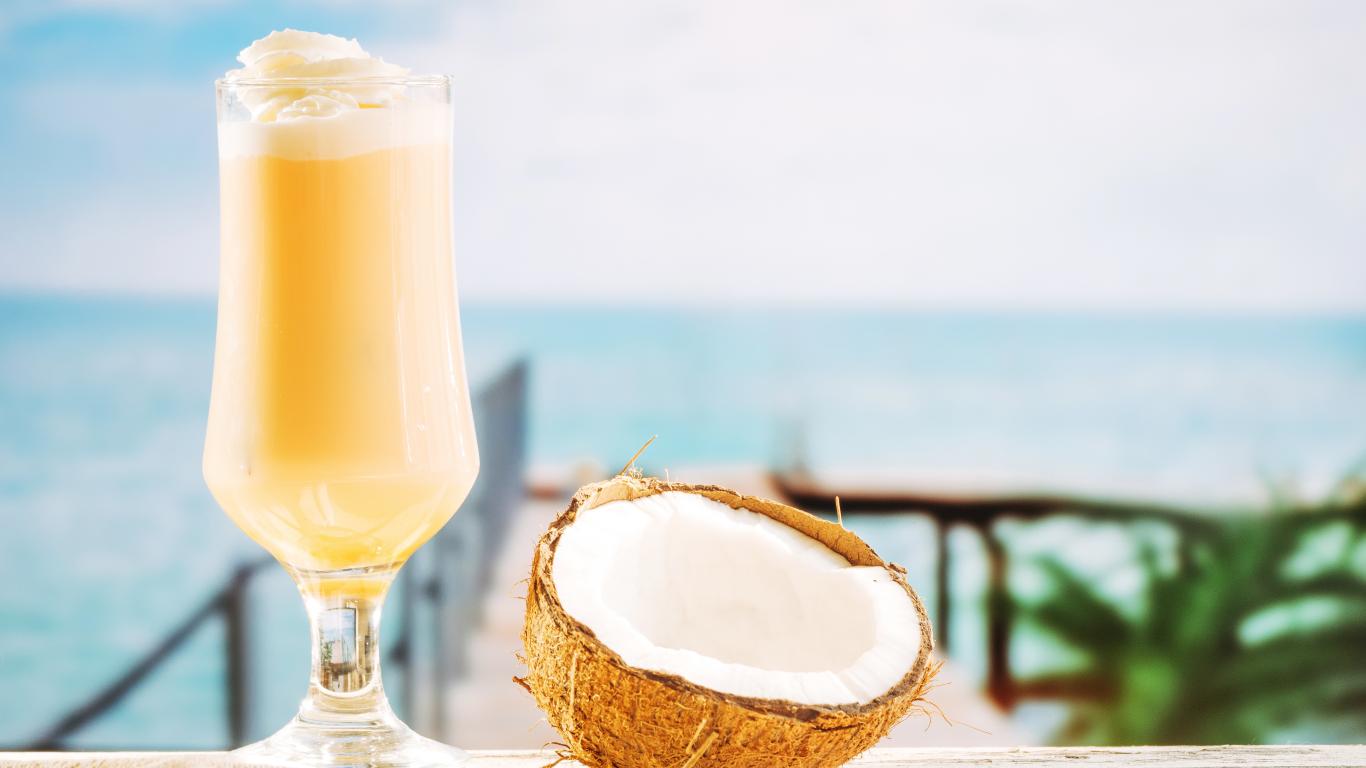 Wallpaper Glass with a cocktail on a table with coconut