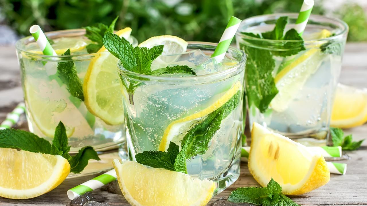 Wallpaper Lemonade with mint and slices of lemon in glasses on a table