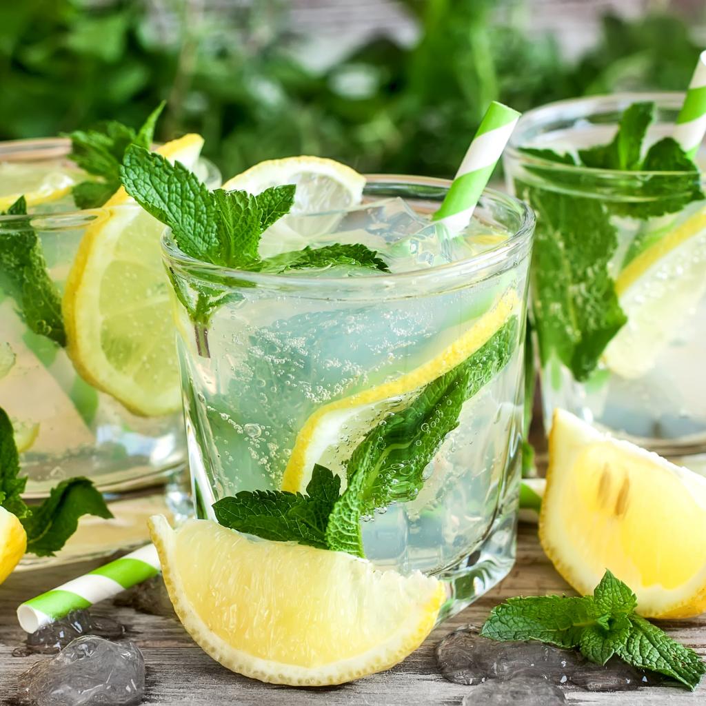 Wallpaper Lemonade with mint and slices of lemon in glasses on a table