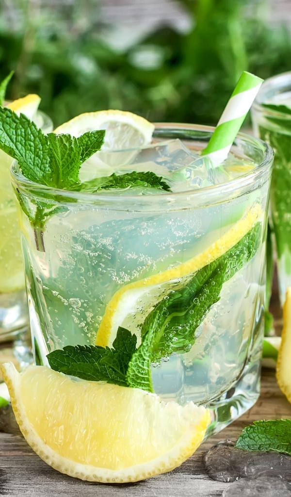 Wallpaper Lemonade with mint and slices of lemon in glasses on a table