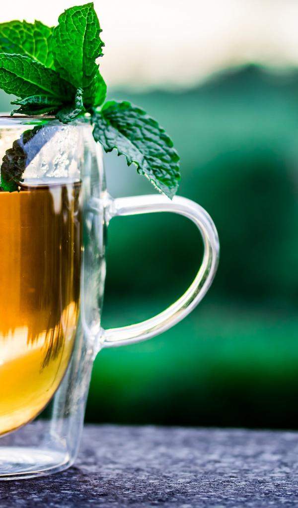Wallpaper Glass cup of tea with mint on the table