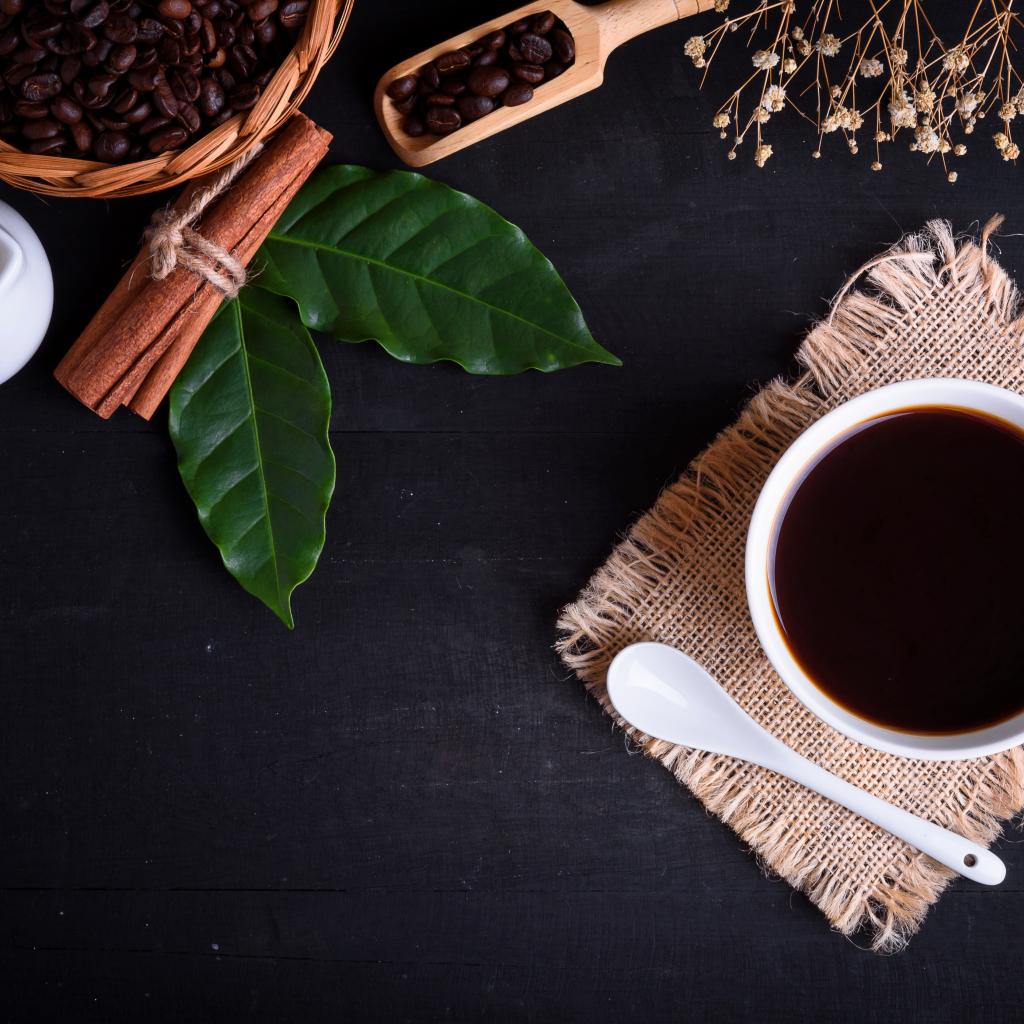 Wallpaper Cup of coffee on a table with cinnamon and bay leaf