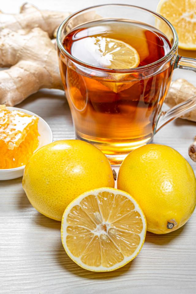 Wallpaper Cup of tea with lemon and ginger on the table
