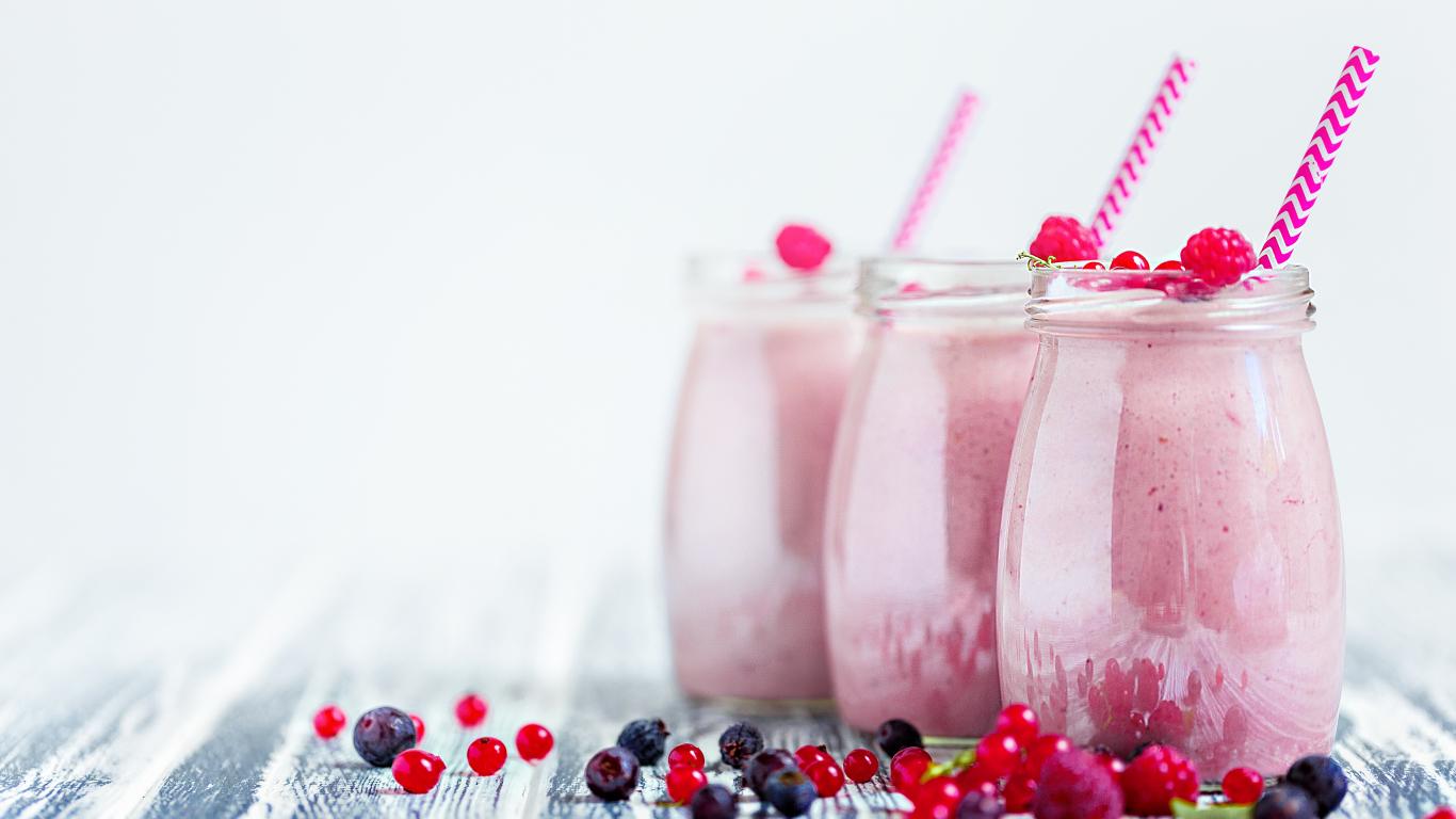 Wallpaper Three jars with berry smoothie on a white background
