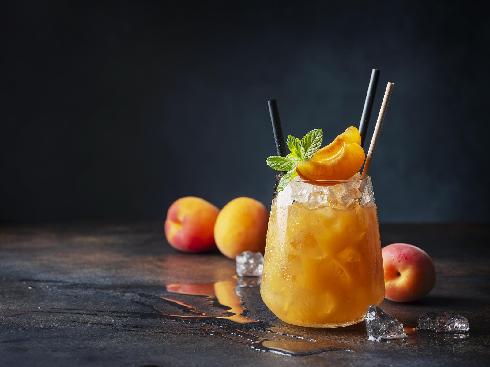 Wallpaper A glass of apricot juice with ice in a glass