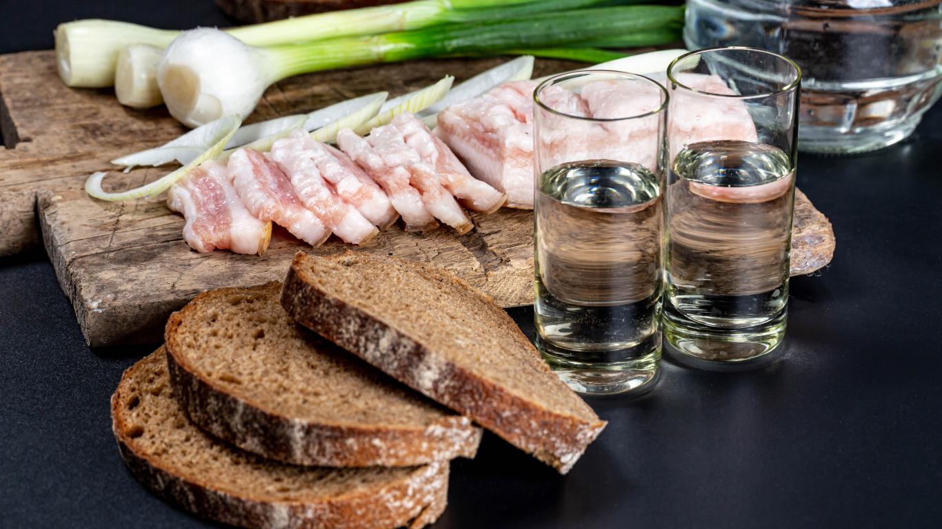Wallpaper Two glasses of vodka on the table with a delicious snack