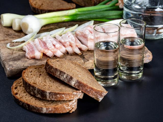 Wallpaper Two glasses of vodka on the table with a delicious snack