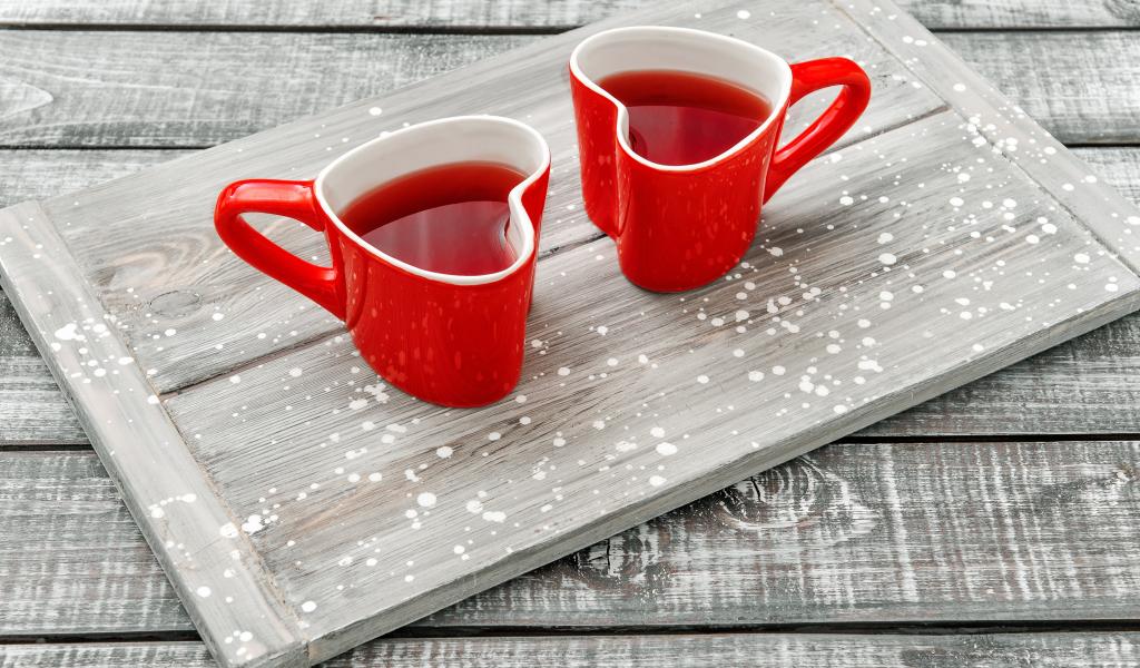 Wallpaper Two red heart-shaped cups on the table