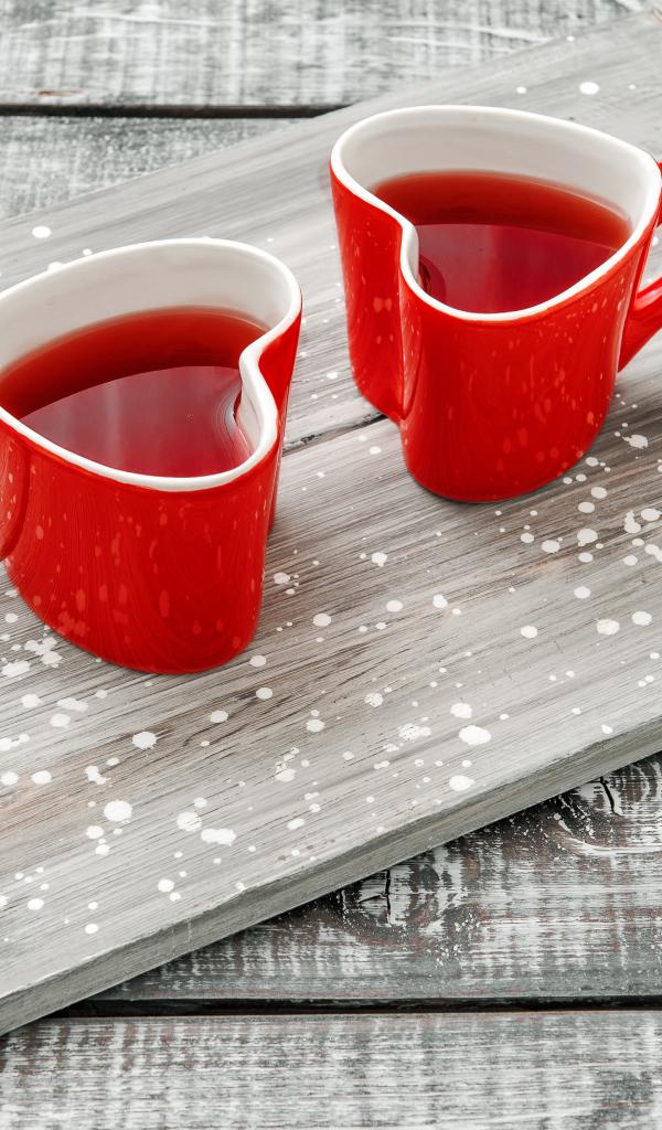 Wallpaper Two red heart-shaped cups on the table