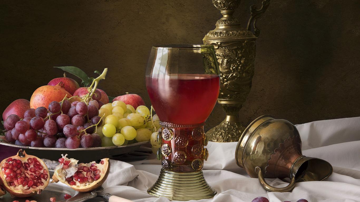 Wallpaper Cup with wine on a table with fruits