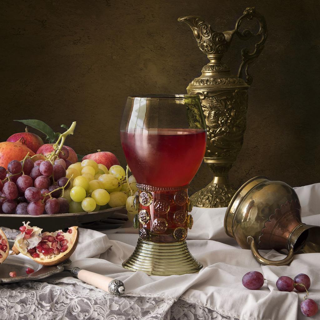 Wallpaper Cup with wine on a table with fruits