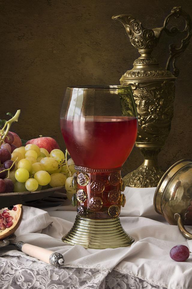 Wallpaper Cup with wine on a table with fruits