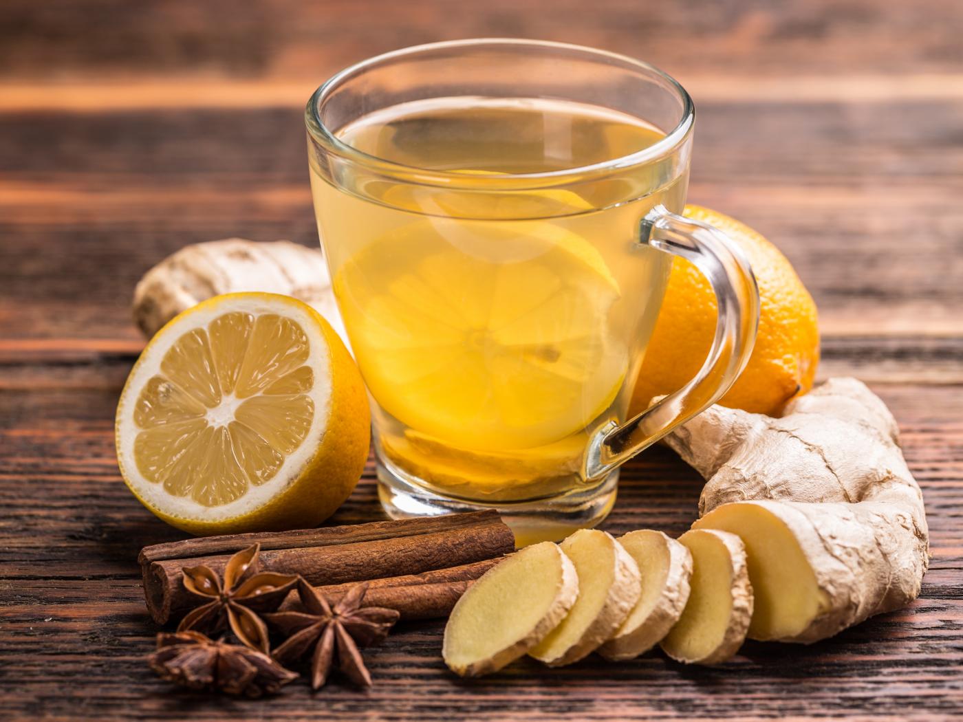 Wallpaper Glass cup of tea on the table with lemon, ginger and spices.