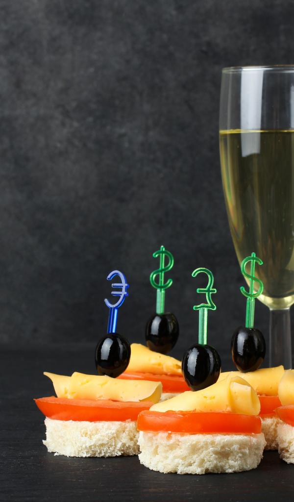 Wallpaper Two glasses of champagne on a table with canapes